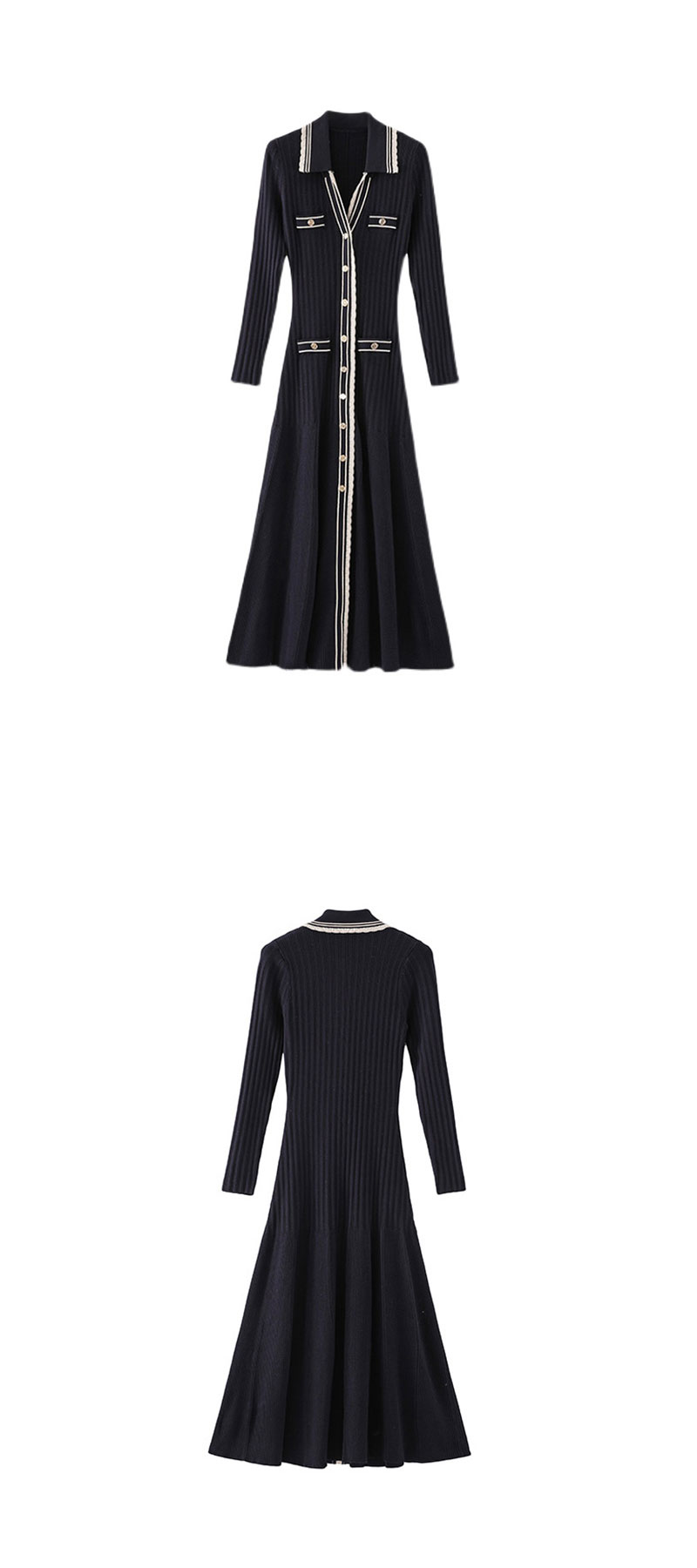 产品名称 | Product name: SD新款长裙法式撞色条纹小香风长袖针织连衣裙女秋