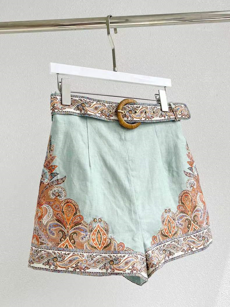 产品名称 | Product name: CiCili小众 2023年夏季新款苎麻定位印花立领灯笼袖衬衣+短裤套装