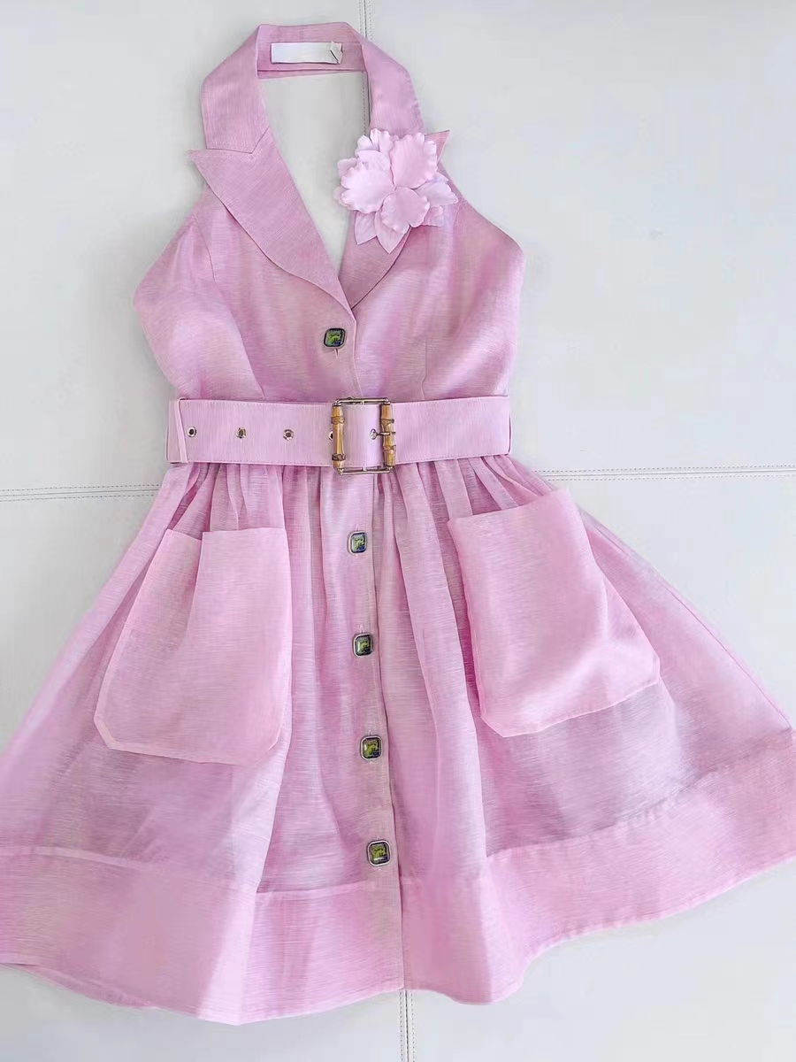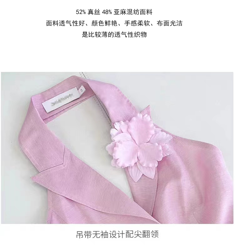 产品名称 | Product name: CiCili 澳洲小众zim2023年夏季新款真丝亚麻露西装领背挂脖连衣裙