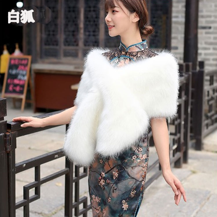 产品名称 | Product name: 新款仿狐狸毛毛披肩仿皮草毛绒女围脖围巾新娘结婚坎肩晚礼服斗篷