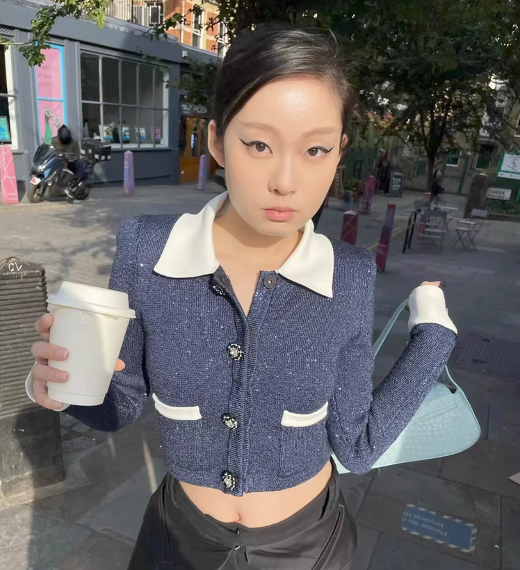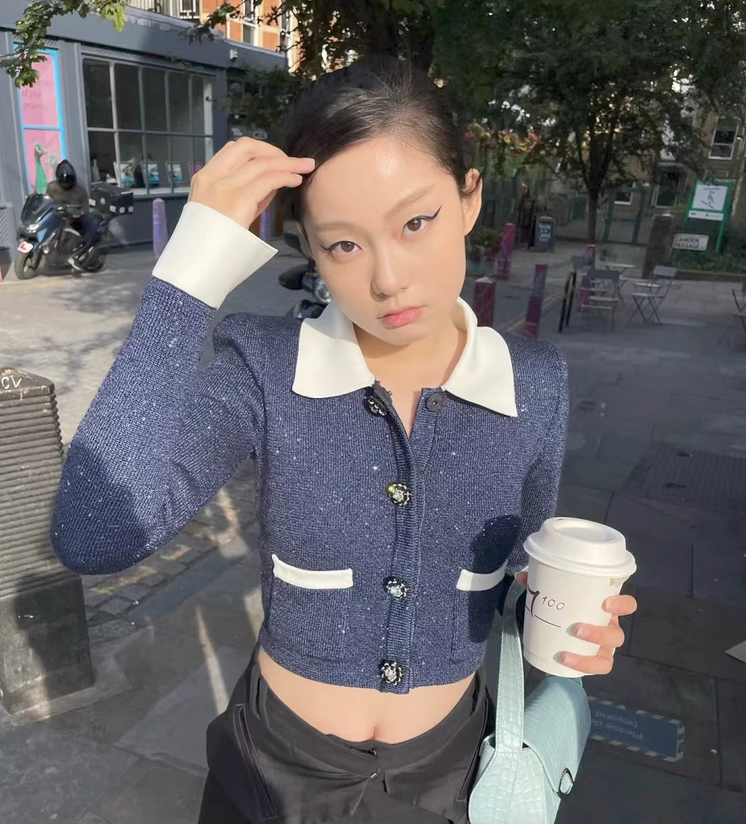 针织开衫毛衣女2023秋冬新款时尚气质洋气高级感翻领长袖短款上衣