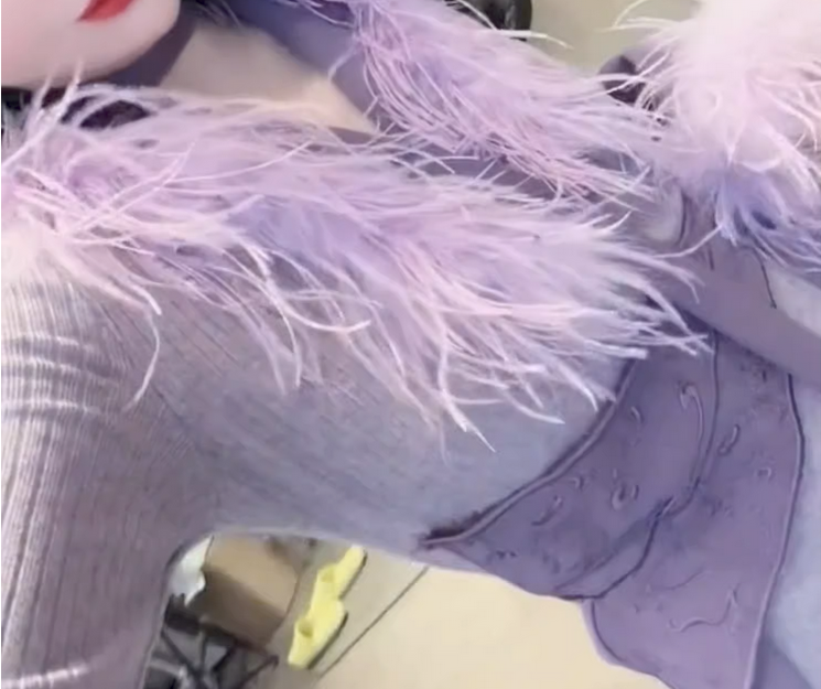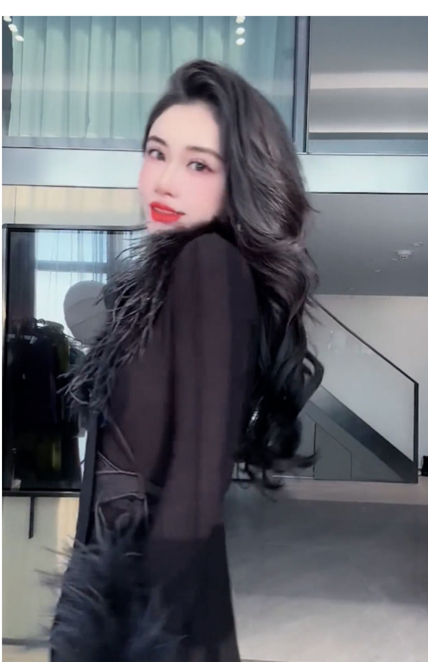 RESALE 2023早秋新款高冷御姐风收腰显瘦复古黑色鸵鸟毛针织连衣裙女修身
