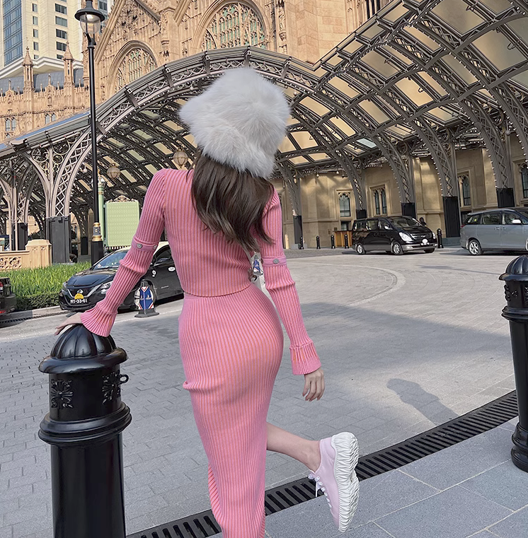 小众不规则上衣半裙双色针织套装ONLY SKIRT