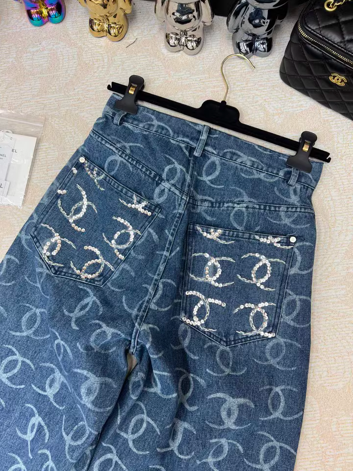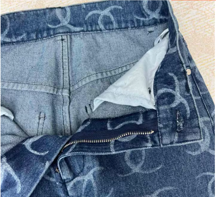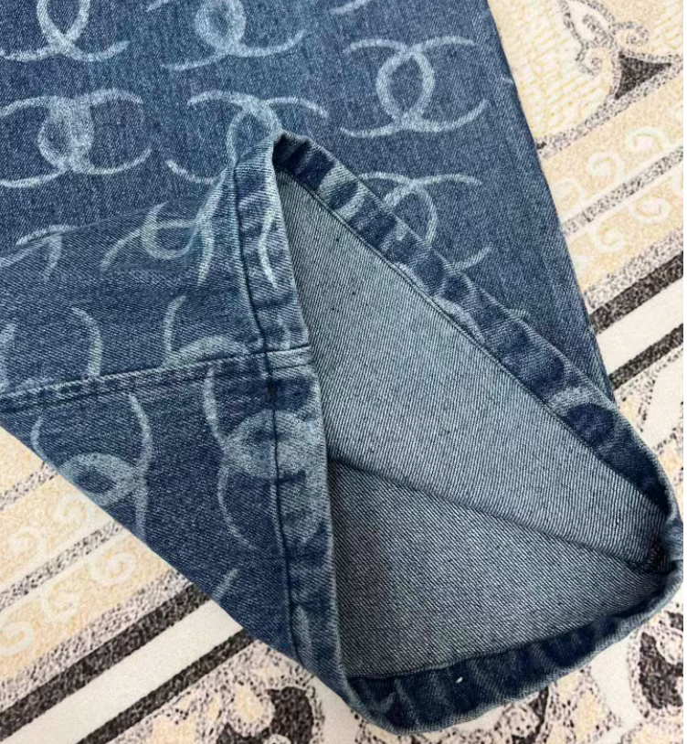 23早秋新款高 定满双C宽松直筒印花牛仔裤 开发定制面料