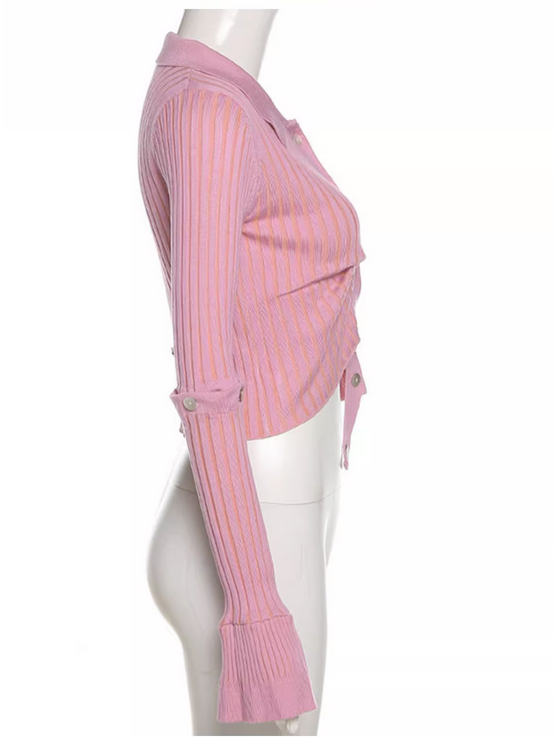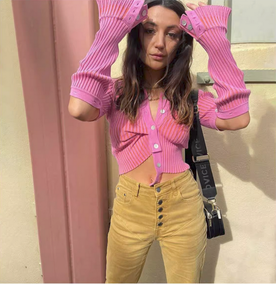 不规则针织衫欧美街头纯色可拆卸长袖女秋冬性感修身单排纽扣毛衣