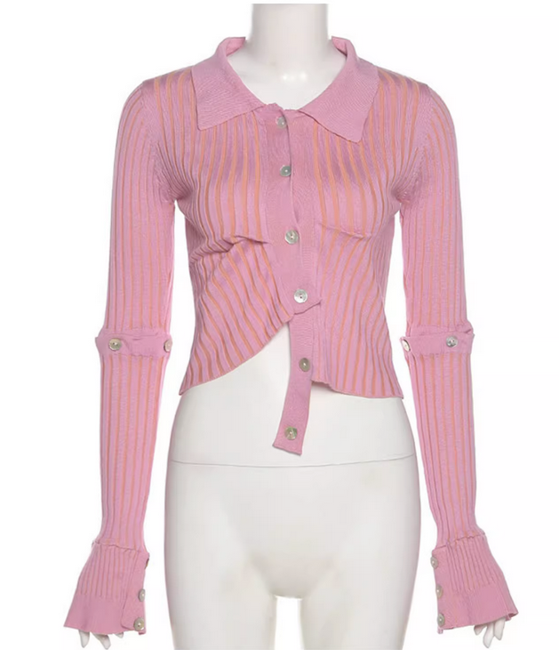 产品名称 | Product name: 不规则针织衫欧美街头纯色可拆卸长袖女秋冬性感修身单排纽扣毛衣