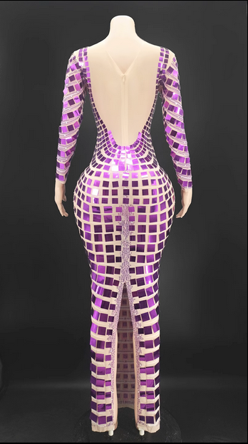 presale within 30 days 闪亮紫色亮片连衣裙鸡尾酒裙女式长礼服长袖晚礼服