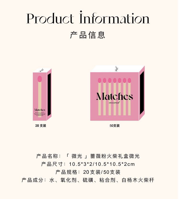 产品名称 | Product name: ARISUSPACE 微光 蔷薇粉火柴礼盒matchbox韩国ins高级设计感