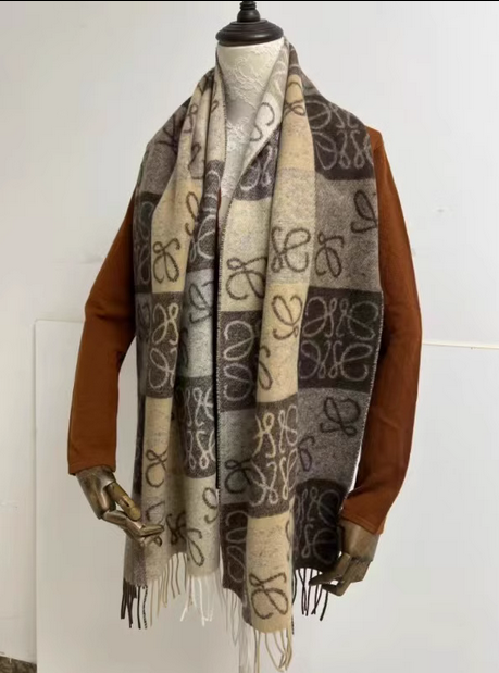 外单秋冬流苏九宫格提花羊绒围巾保暖拼色加厚女士羊羔毛小披肩