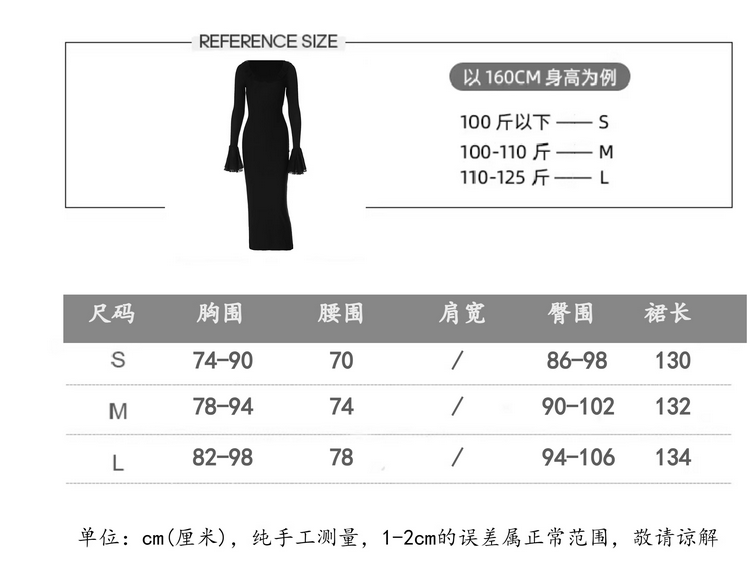 产品名称 | Product name: 欧美风性感荷叶边圆领喇叭长袖连衣裙女后背系绳收腰显瘦过膝长裙
