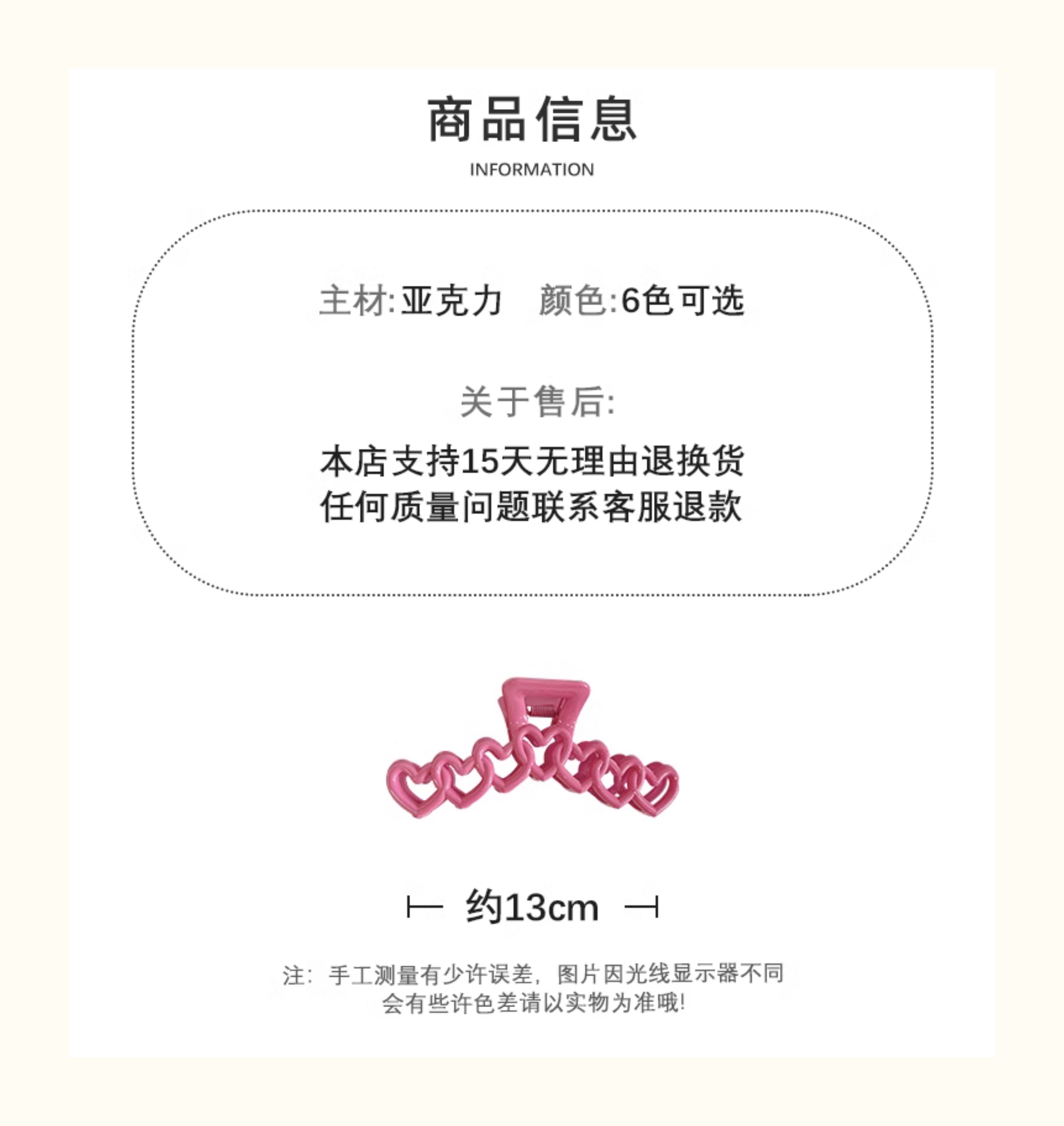 产品名称 | Product name: 多巴胺爱心发夹女2023年新款鲨鱼夹子发卡后脑勺盘发抓夹甜美头饰