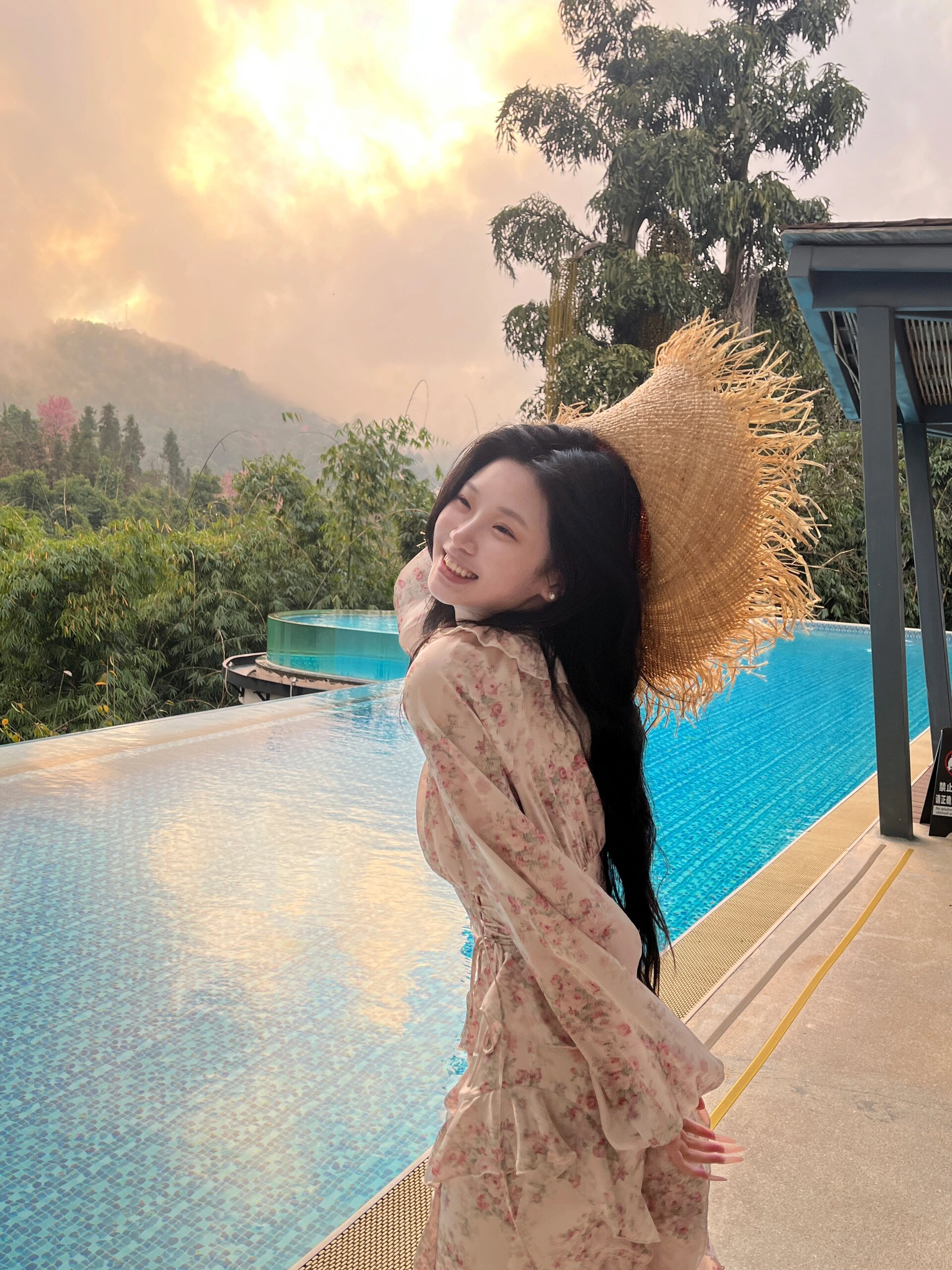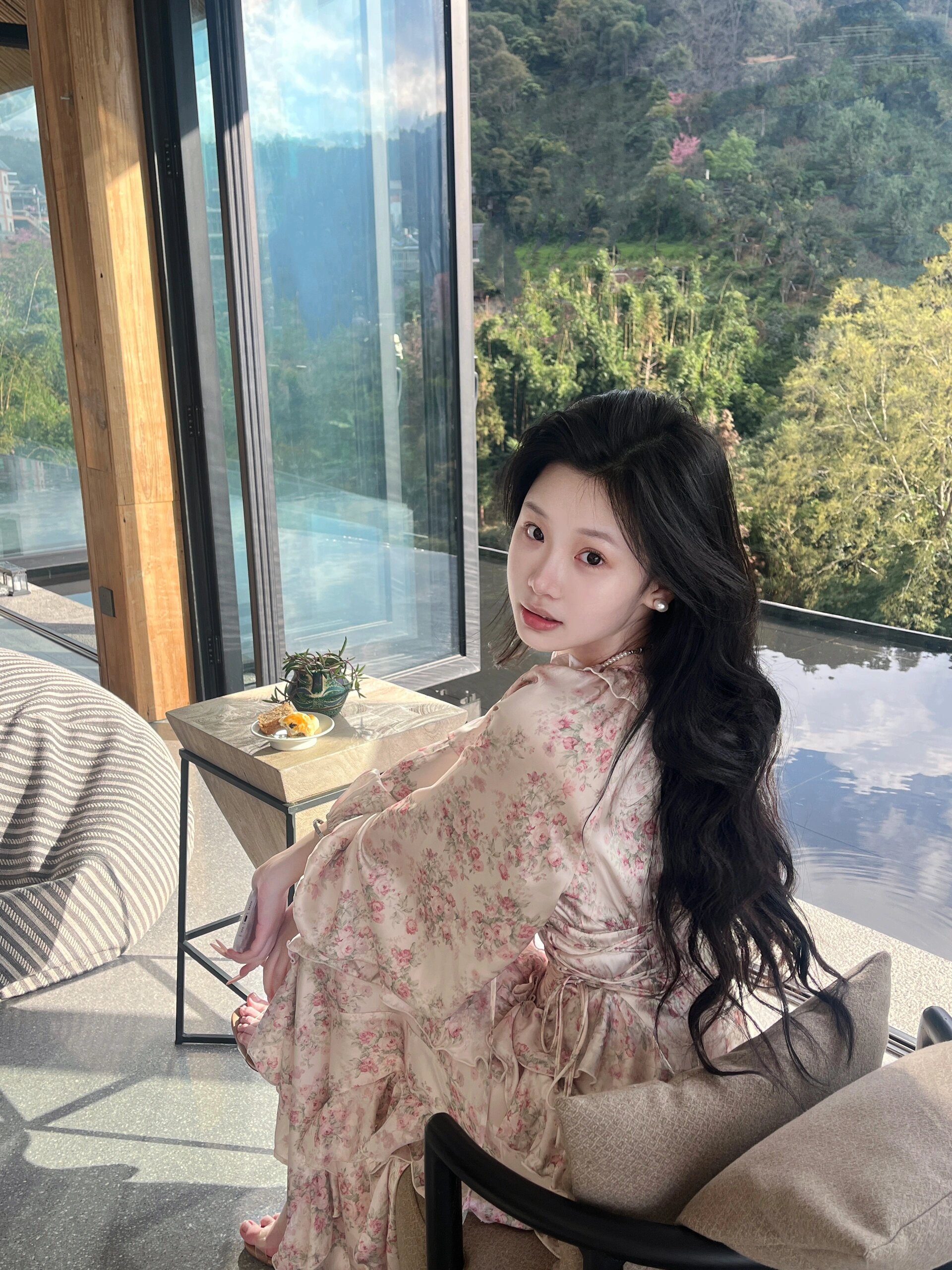 田园宫廷风交叉绑带层次感荷叶边连衣裙海边度假拍照沙滩长