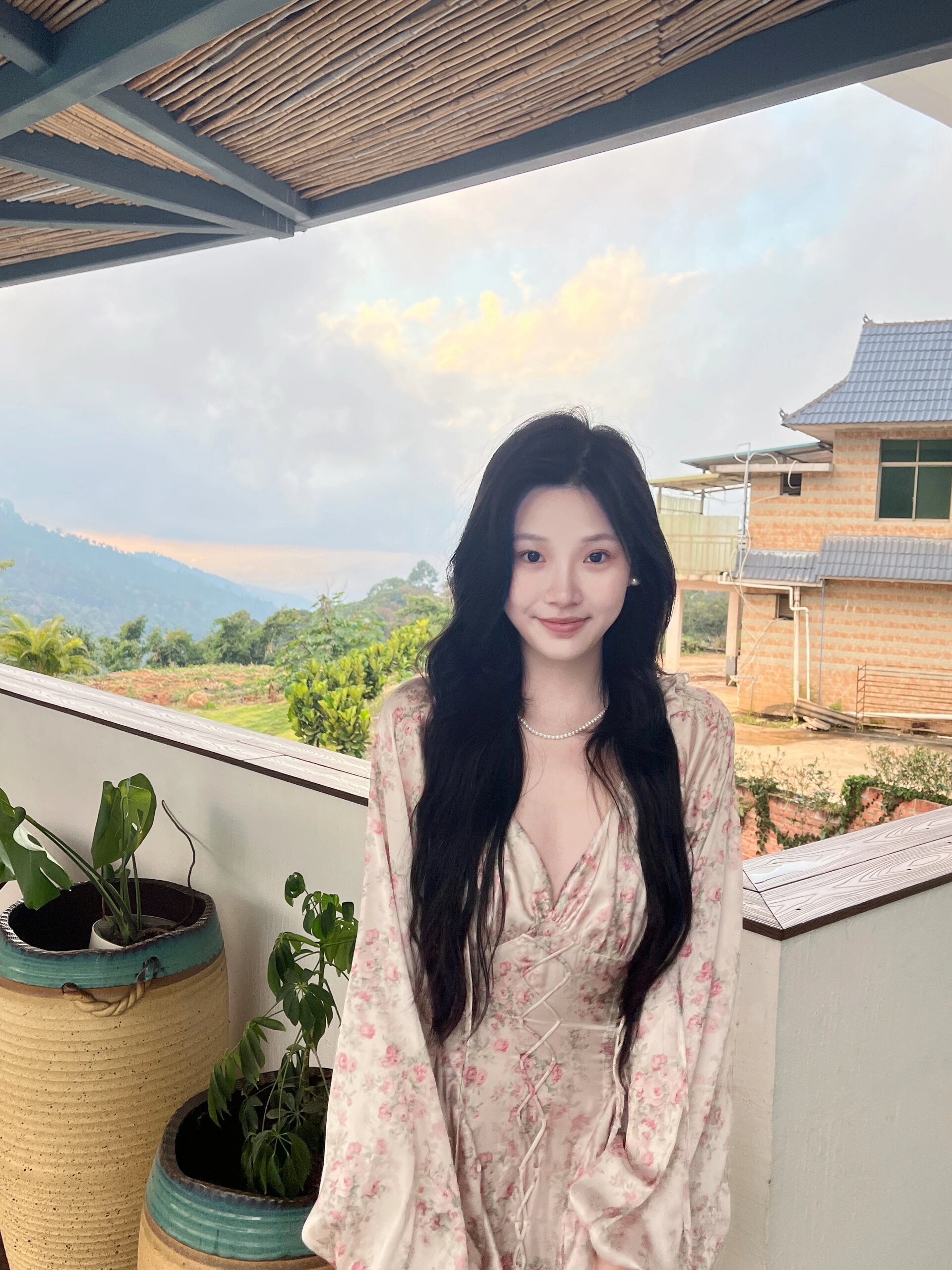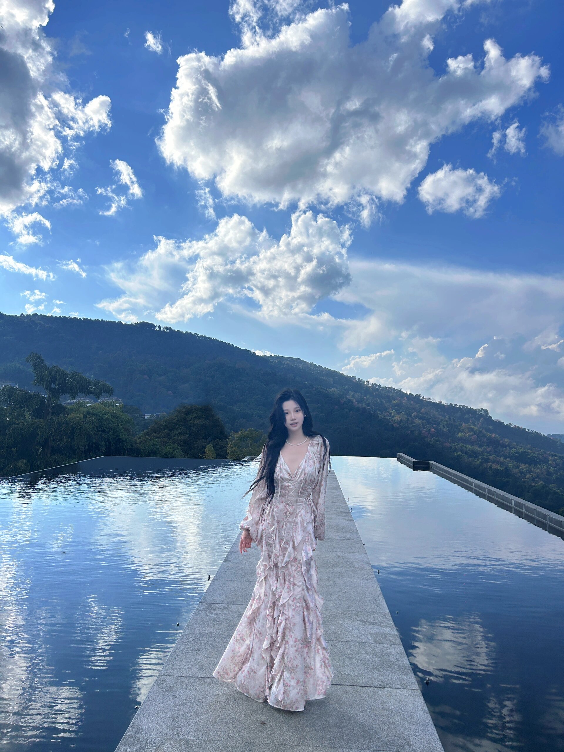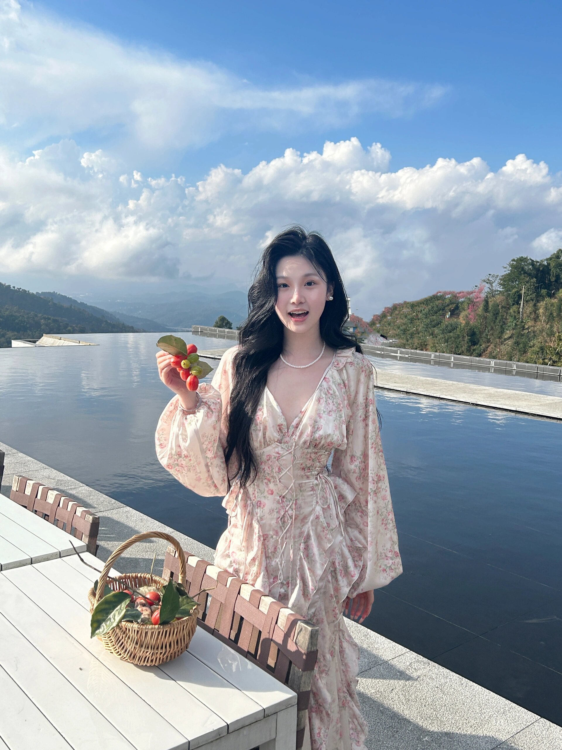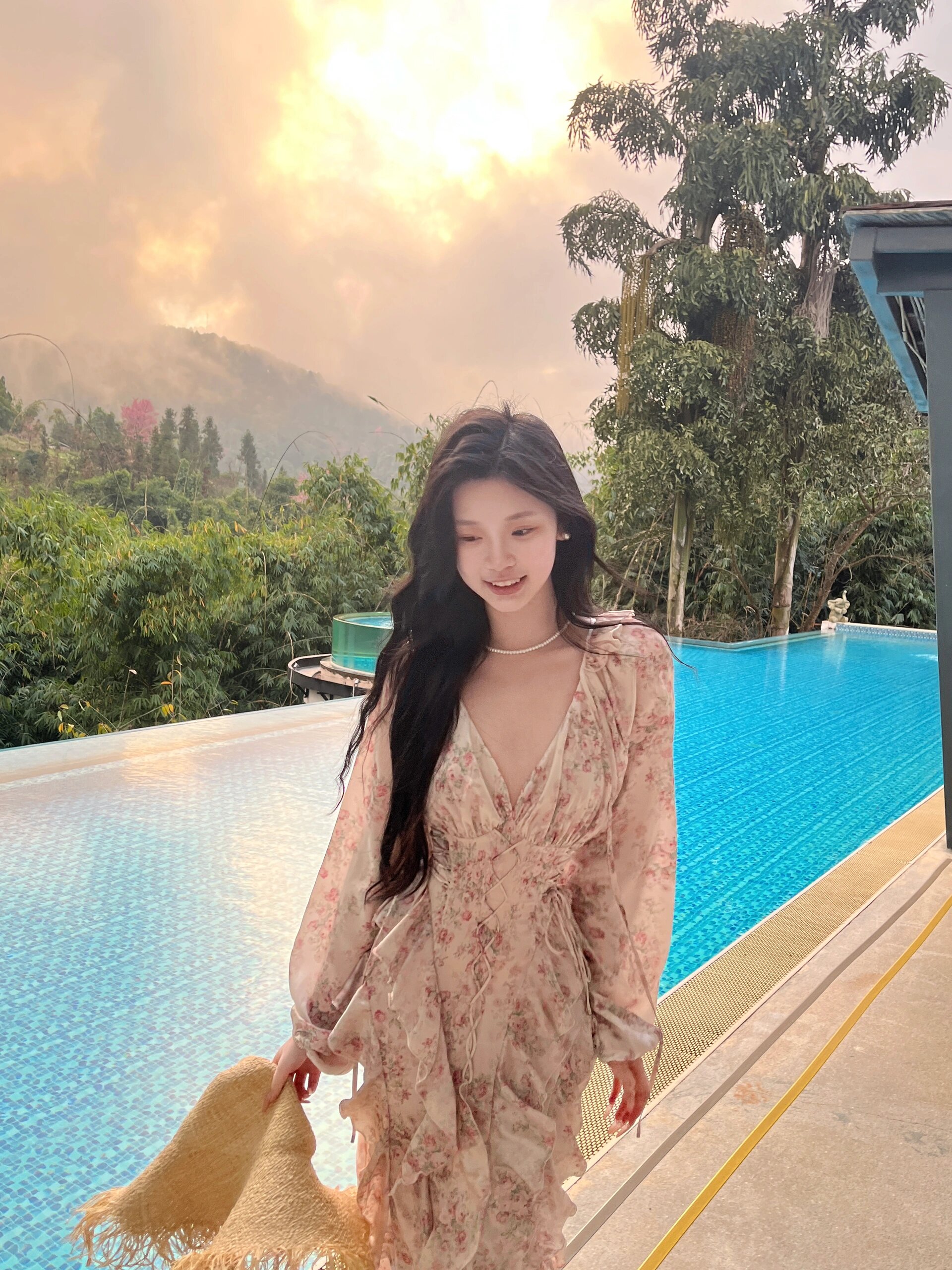 产品名称 | Product name: 田园宫廷风交叉绑带层次感荷叶边连衣裙海边度假拍照沙滩长