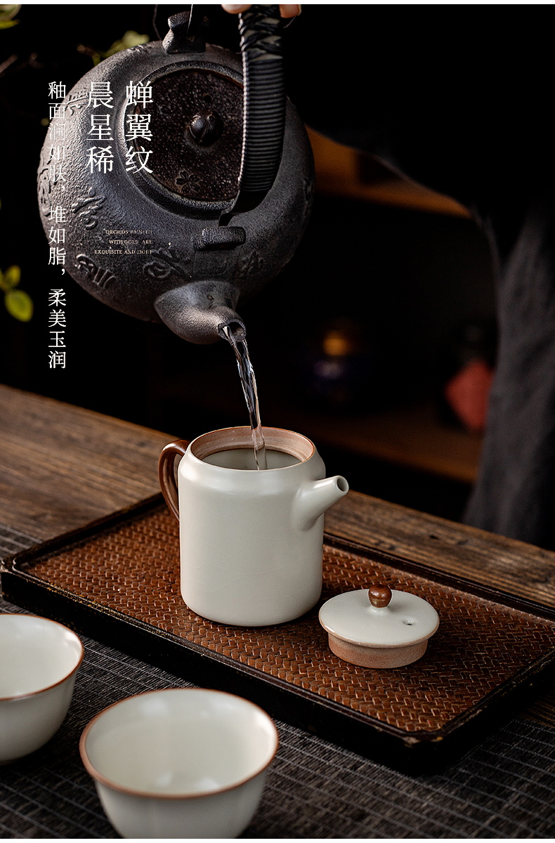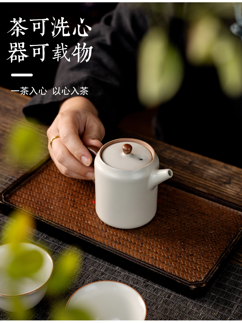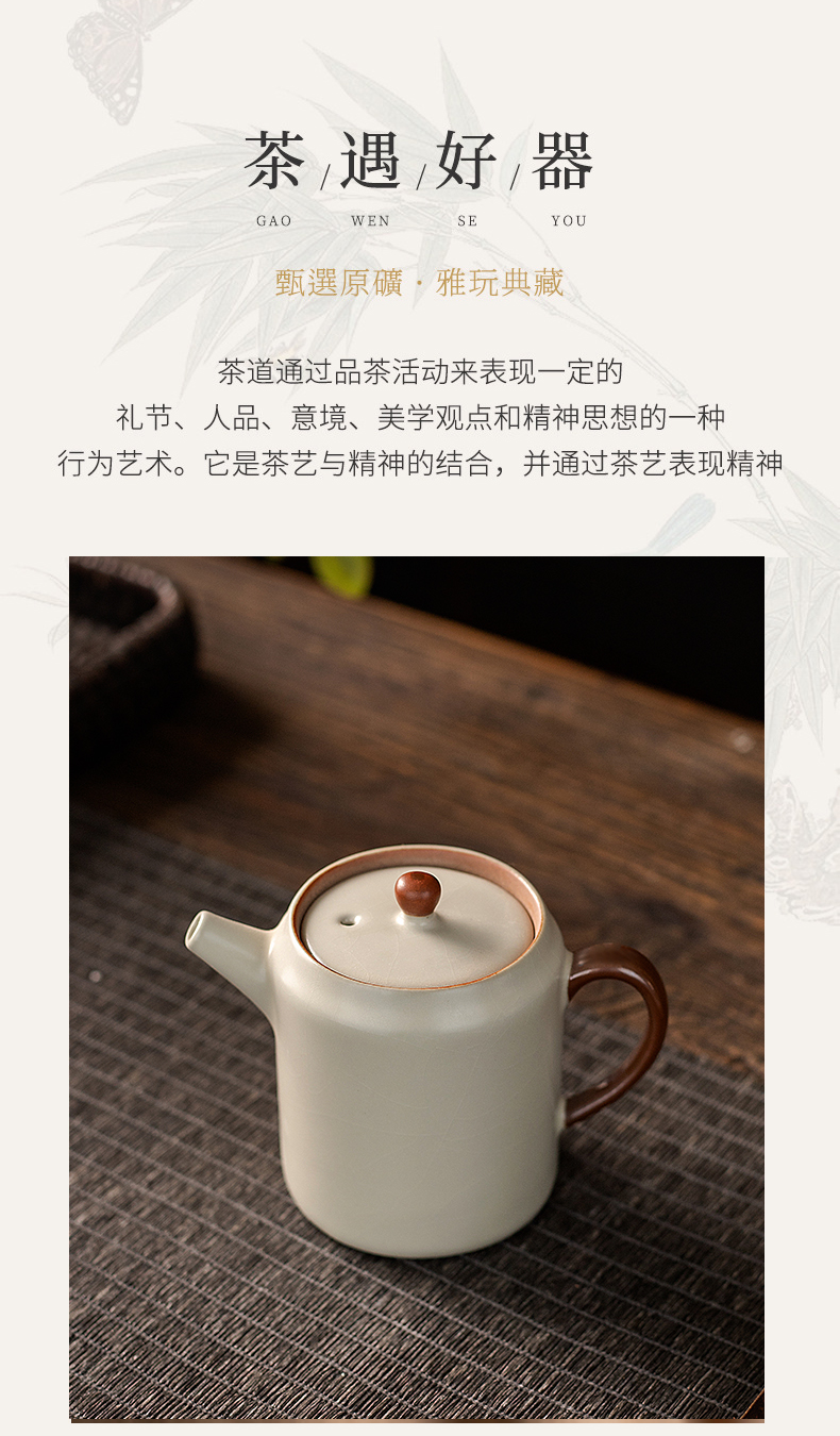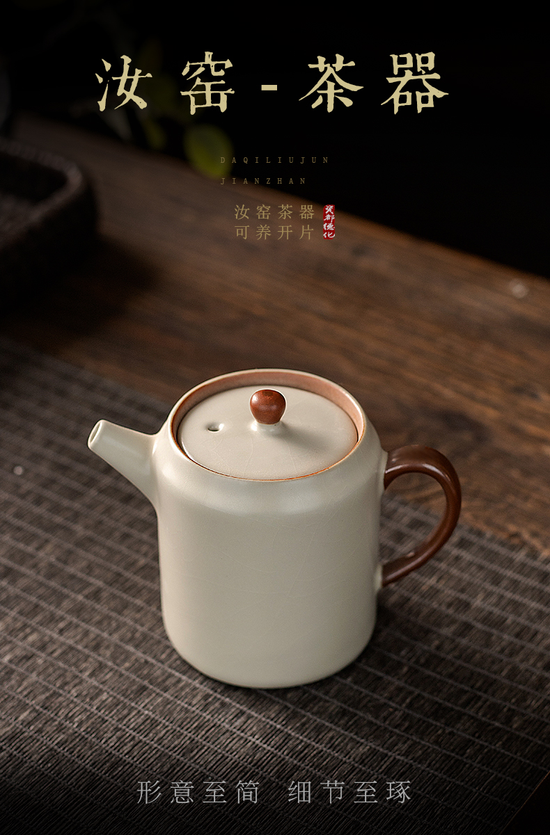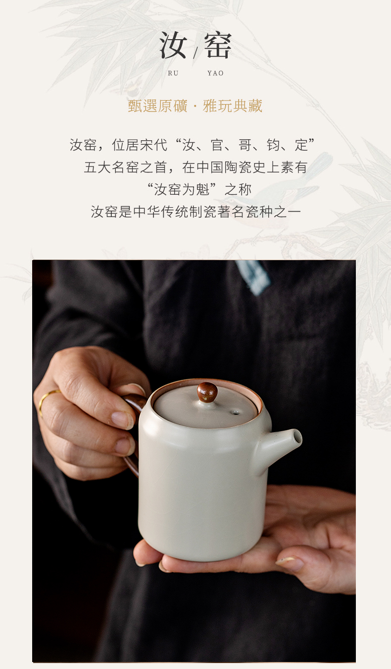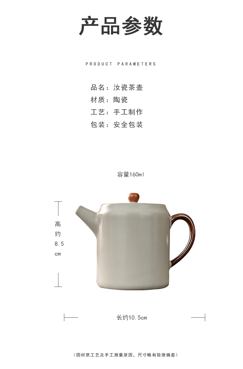 产品名称 | Product name: 汝窑茶壶米黄防烫方圆壶小茶壶泡茶喝茶家用茶水壶泡茶器功夫茶具